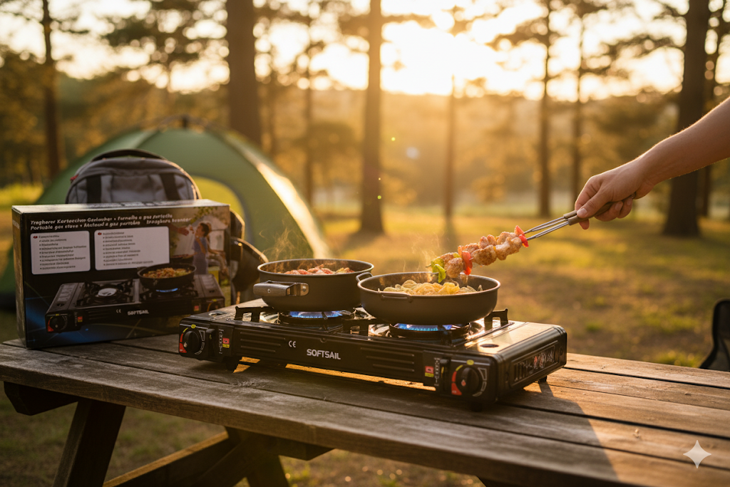 Softsail Tragbarer Kartuschen-Doppelgaskocher 1 Produktbeschreibung Der tragbare Kartuschen-Doppelgaskocher von Softsail ist der ideale Begleiter für Camping, Outdoor-Aktivitäten oder...Regulärer Preis €35,00 EURAngebotspreis €35,00 EUR Regulärer PreisStückpreis pro€39,95 EURIm Angebot -