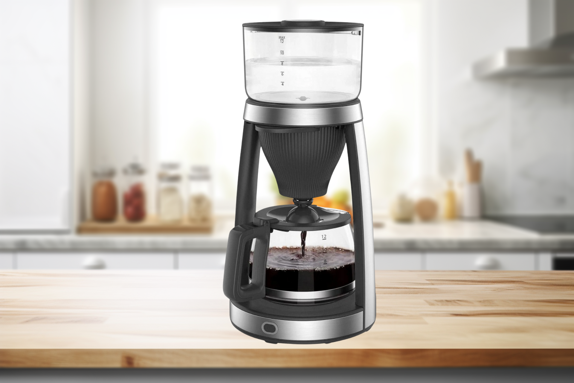 DMS CM-900B Filter Kaffeemaschine, Glaskanne 12 Tassen, Edelstahl, Aromafunktion