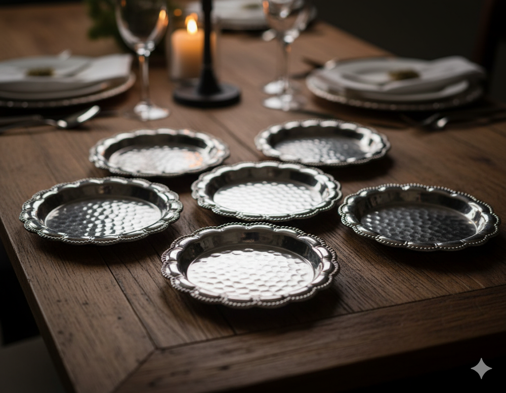 5 Untersetzer Vintage Metall silber, Sammler, Hingucker