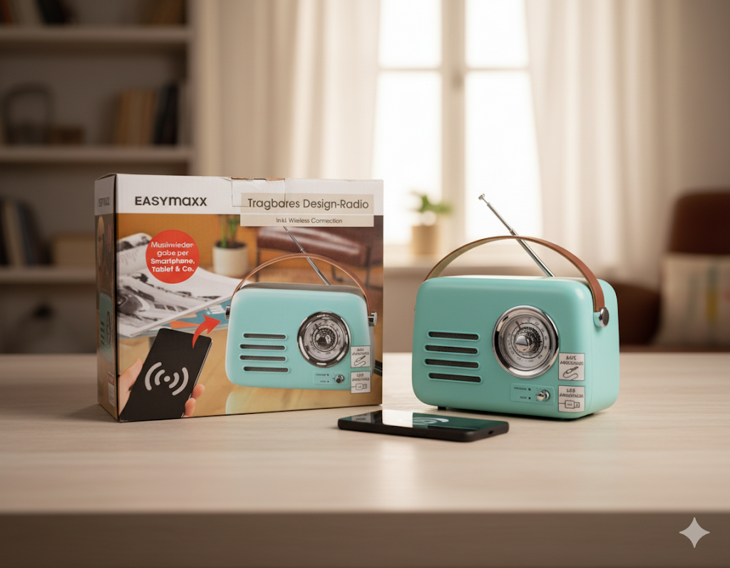 Easymaxx – Tragbares Design-Radio inkl. Wireless Connection Das Easymaxx Design-Radio bietet Ihnen mehr als nur einen klassischen Radioempfang....Regulärer Preis €18,00 EURAngebotspreis €18,00 EUR Regulärer PreisStückpreis pro€24,95 EURAusverkauft Im Angebot -