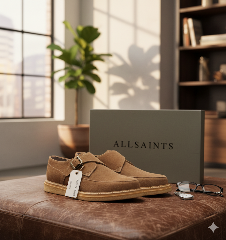All Saints Rollin Monk Strap Shoe - Taupe Größe 41 Herrenschuh, Wildleder, B-Ware