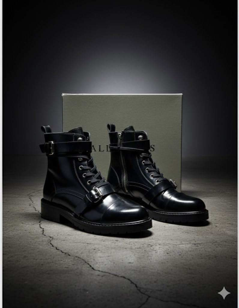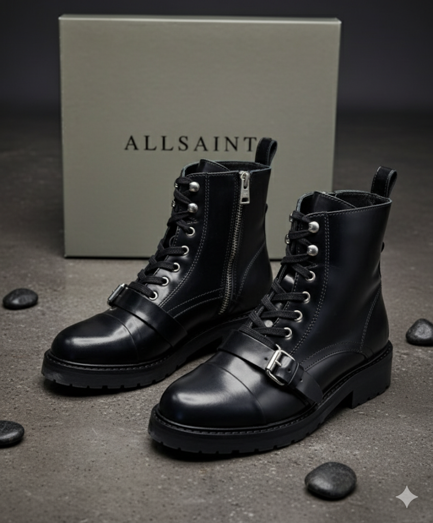 Allsaints Franka Damen Boots Leder Schwarz Gr. 39 Stiefeletten Schuhe ✅