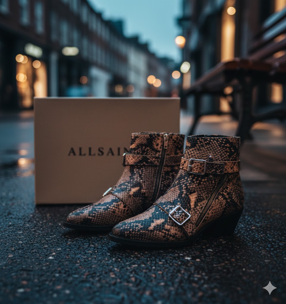 Allsaints Lior - Zip Boot - Calf Snake, Damen, Größe 37, Taupe, B-Ware