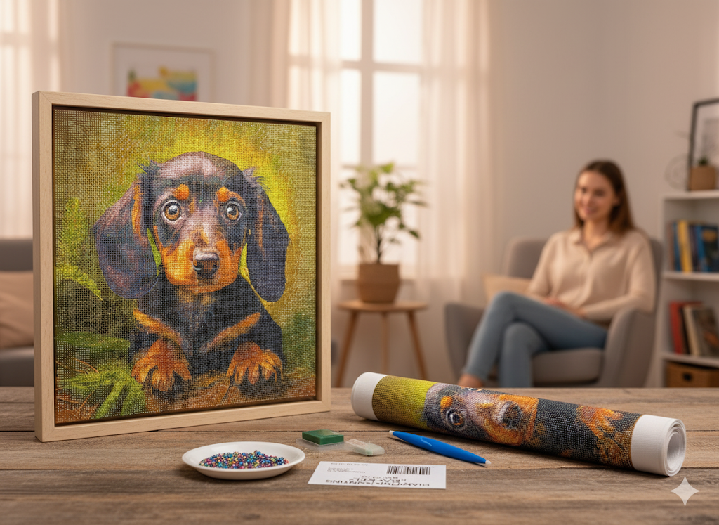 Diamond Painting Dackel 40x40 cm Malen nach Zahlen Stickerei Set