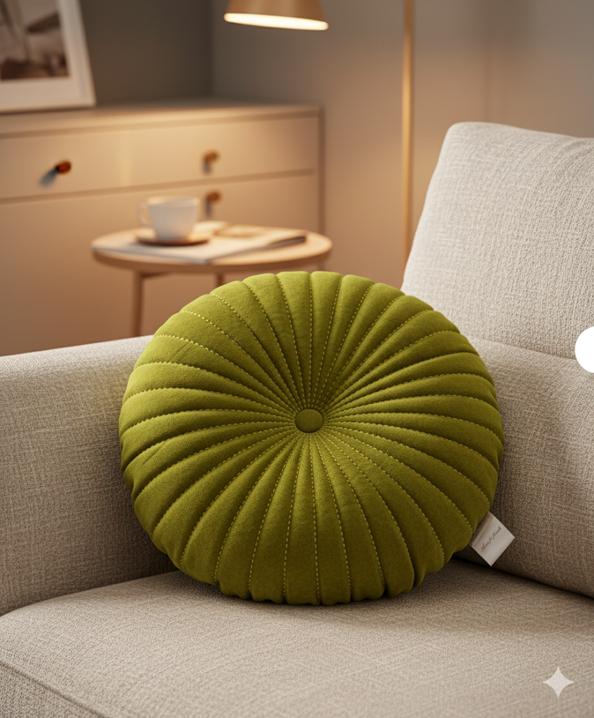 ANNI FOR FRIENDS Dekokissen Rund 45cm Baumwolle Ziernähte Wohnkissen