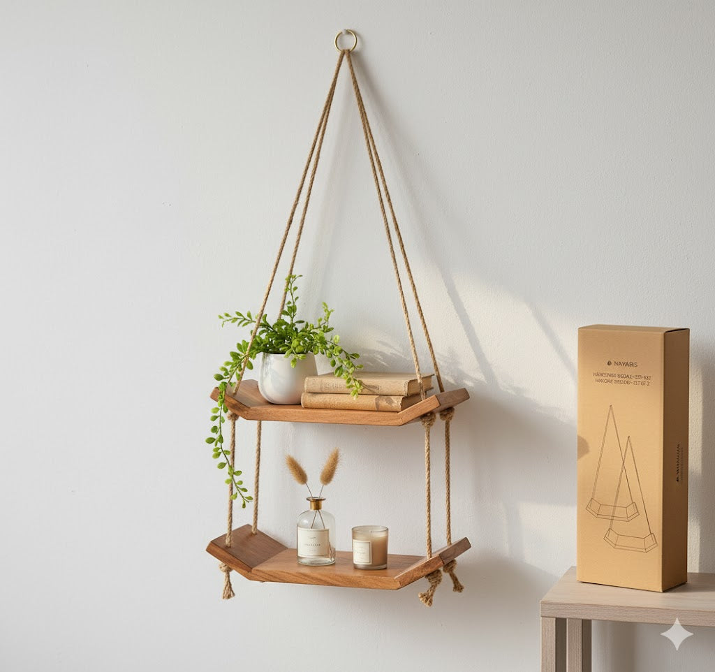 Navaris 2x Hängeregal Akazienholz Deko Regal Wandregal Hängend ✅