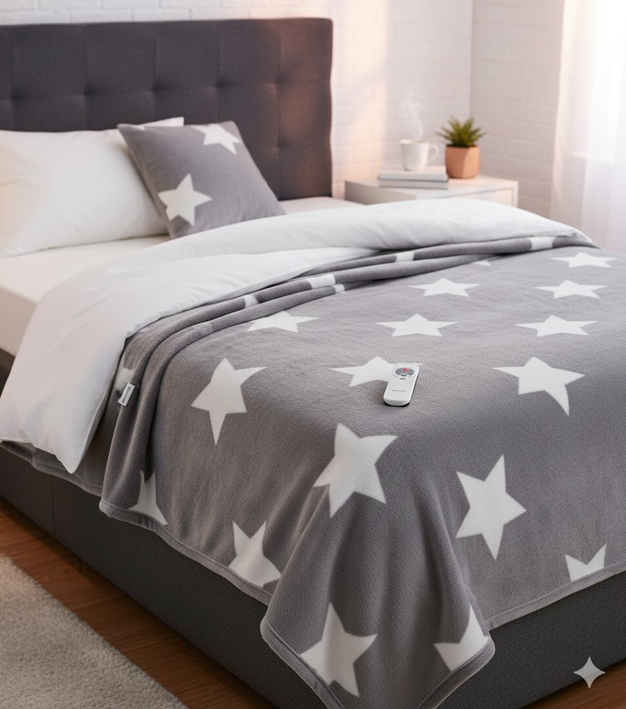 Navaris Elektrische Heizdecke 180x130, Grau mit Sternen