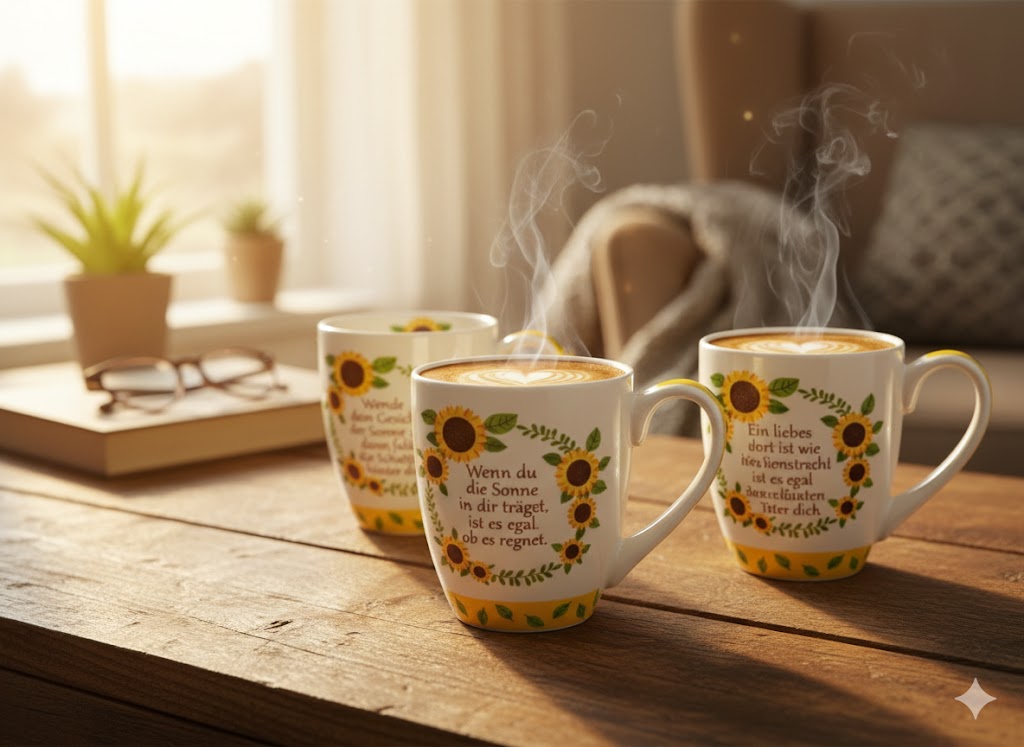 Tassen Sonnenblumen 3er Set, Sprüche, Geschenk, Modern, Tassenset