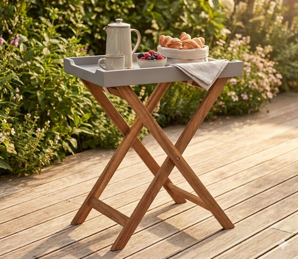 Tchibo Tablettisch Grau-Washed Akazie Gestell MDF Tablett Klapptisch