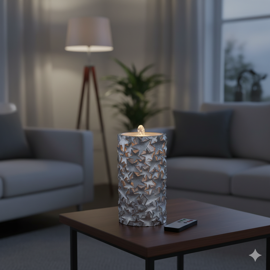 AM Design Brunnen Silber Sterne mit Fernbedienung, Beleuchtete Wasserfontäne