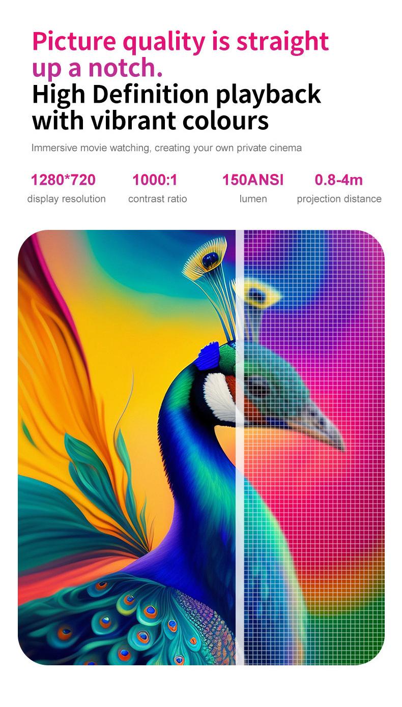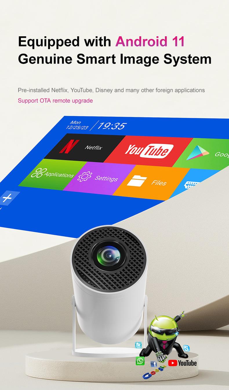 Erleben Sie gestochen scharfe Bilder, moderne Technologie und grenzenlose Flexibilität mit diesem tragbaren Projektor. Dank WiFi 6 und Bluetooth genießen Sie stabile Verbindungen, flüssiges Streaming und beeindruckenden Sound – perfekt für Heimkino, Filme, Gaming oder Präsentationen.
