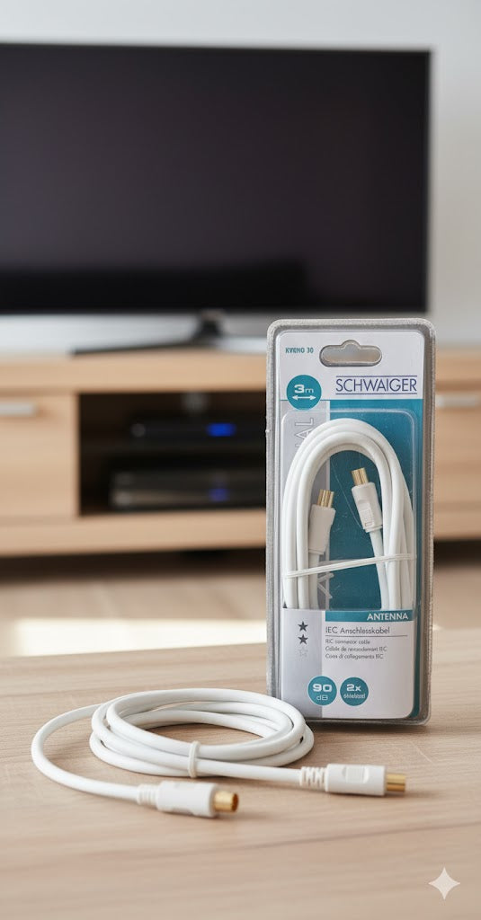 Das Schwaiger KVKHQ 30 ist ein hochwertiges IEC-Anschlusskabel, das für optimale Signalübertragung sorgt. Mit einer Länge von 3 Metern und einer Abschirmung von 90 dB eignet es sich perfekt für den Anschluss von Fernsehern, Receivern oder anderen Endgeräten.
